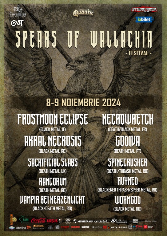 Spears of Wallachia este un nou festival de metal extrem prezentat de Cavalleria Events. Pentru ca evenimentul are loc pe 8 si 9 noiembrie in Quantic Club, organizatorii au anuntat impartirea trupelor in cele doua zile ale festivalului.